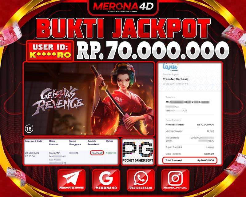 Selamat Kepada Member MERONA4D K******RO Telah Jackpot Di GEISHA'S REVENGE