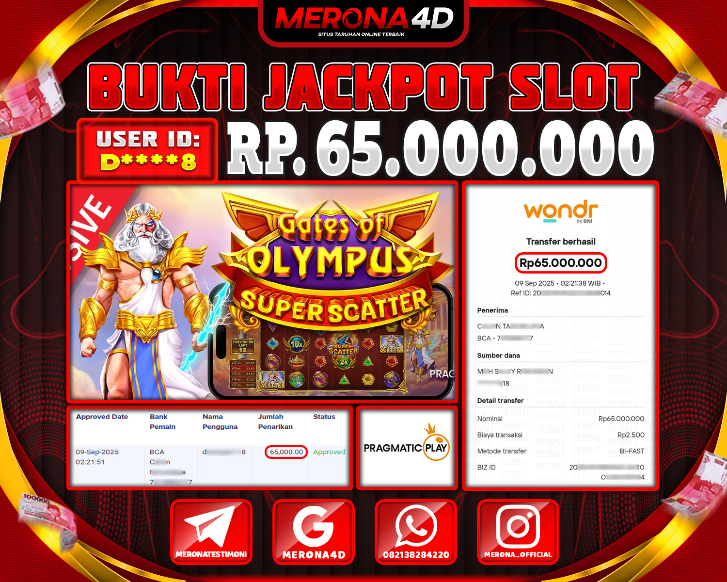 Selamat Kepada Member MERONA4D D****8 Telah Jackpot Di GATES OF OLYMPUS SUPER SCATTER