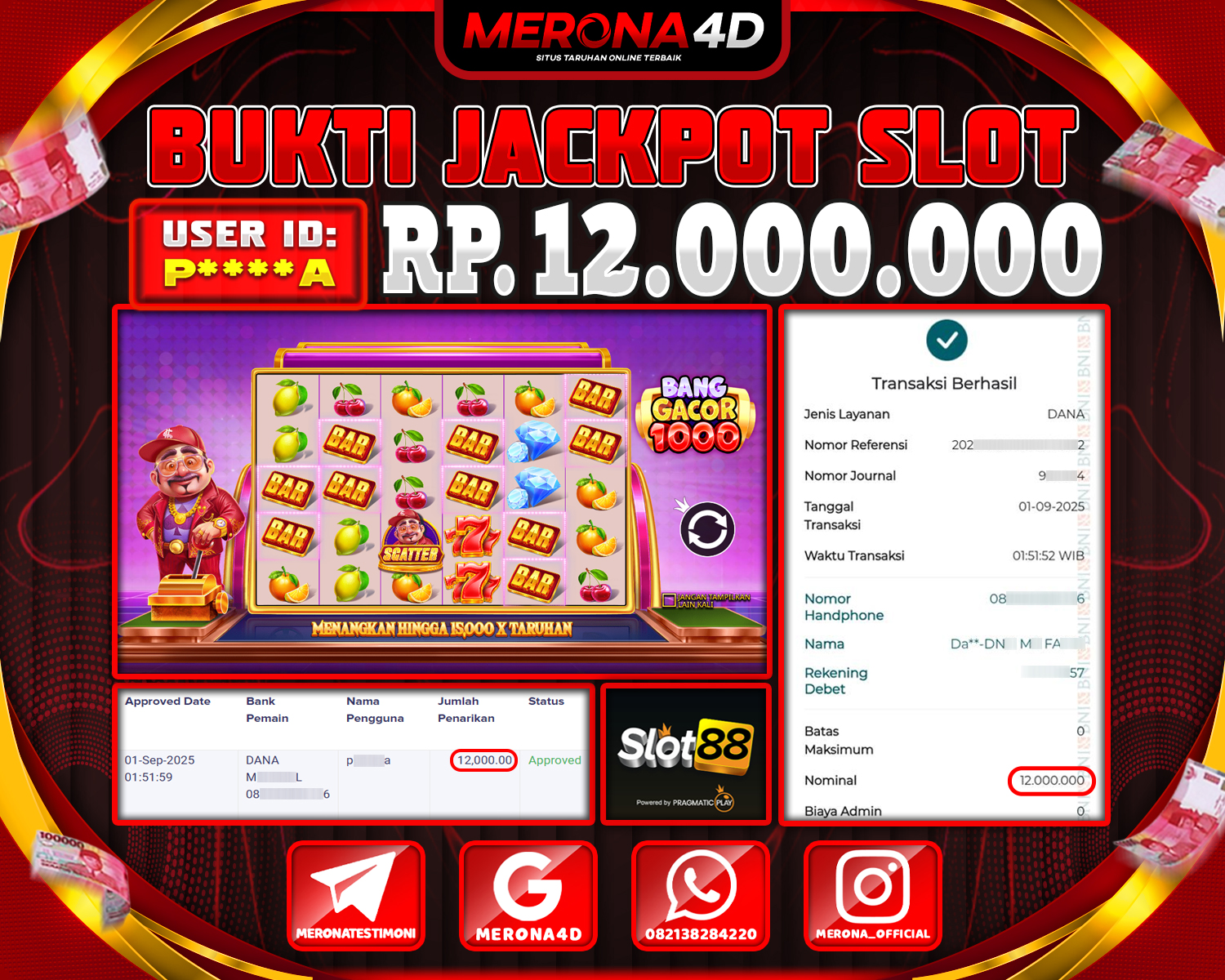 Selamat Kepada Member MERONA4D P****A Telah Jackpot Di BANG GACOR 1000