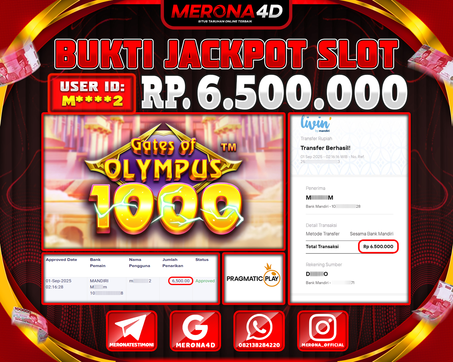Selamat Kepada Member MERONA4D M****2 Telah Jackpot Di GATES OF OLYMPUS 1000