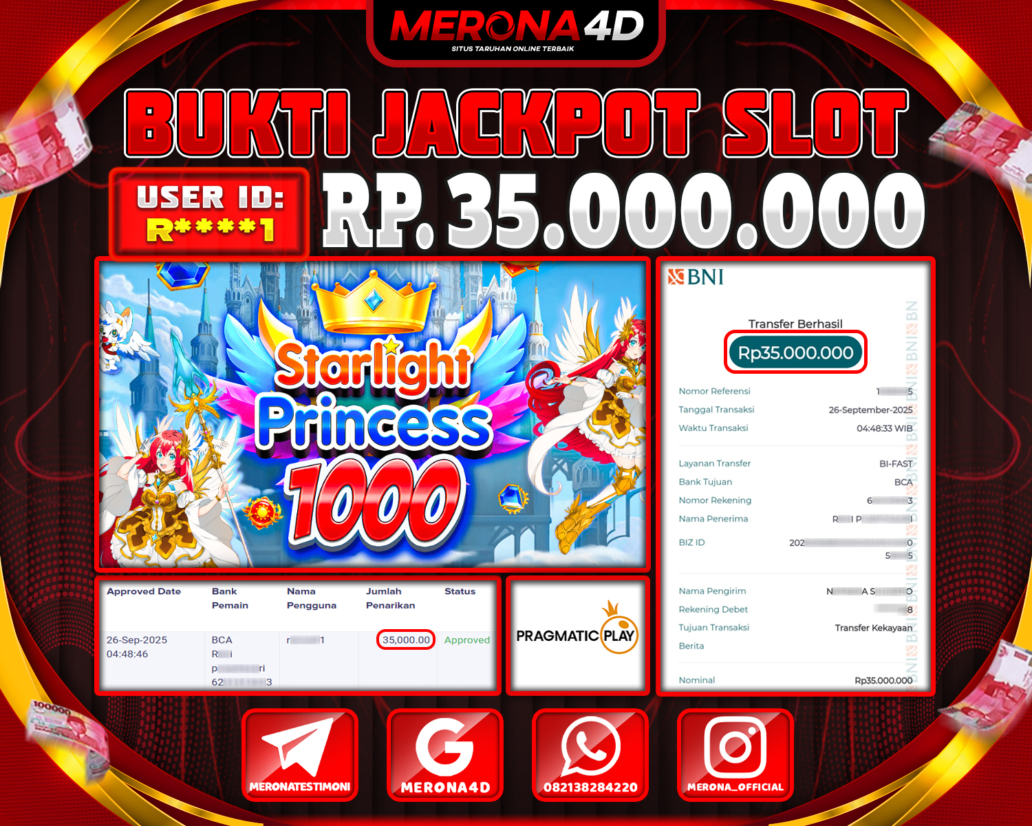 Selamat Kepada Member MERONA4D R****1 Telah Jackpot Di STARLIGHT PRINCESS 1000