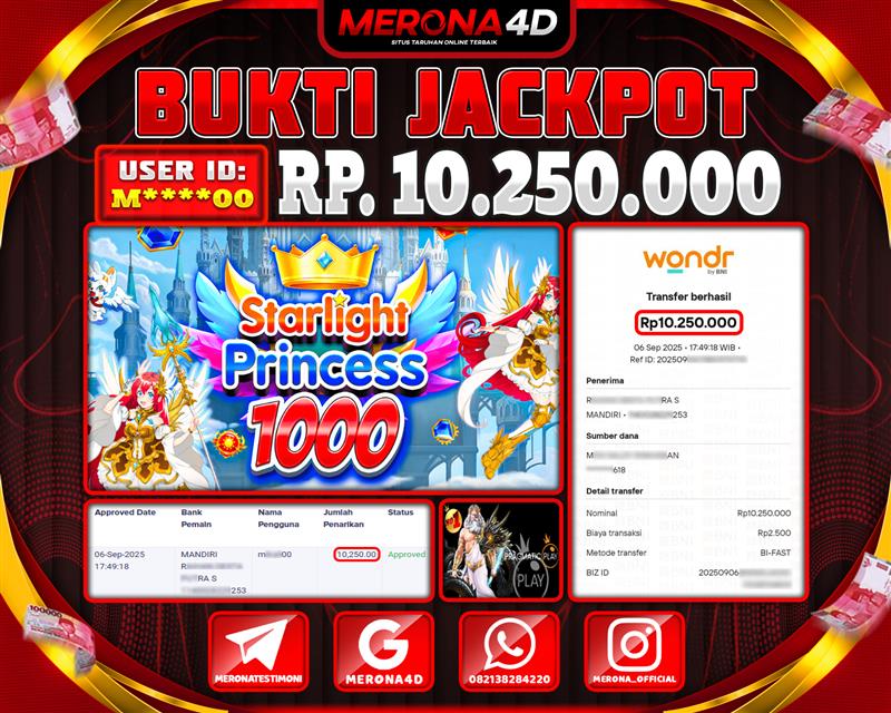 Selamat Kepada Member MERONA4D M*****00 Telah Jackpot Di STARLIGHT PRINCESS 1000
