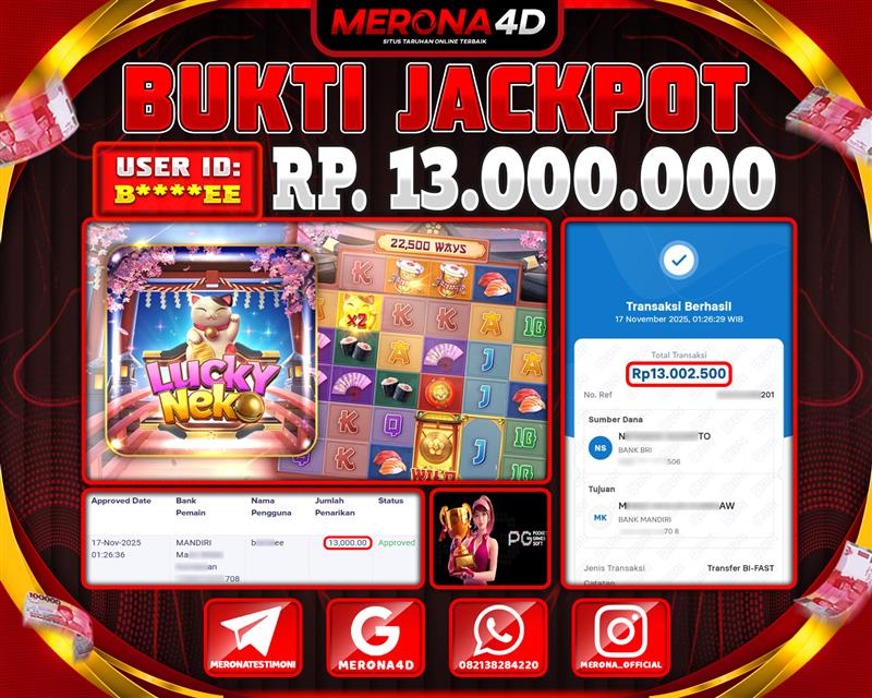 Selamat Kepada Member MERONA4D 1*****59 Telah Jackpot Di LUCKY NEKO