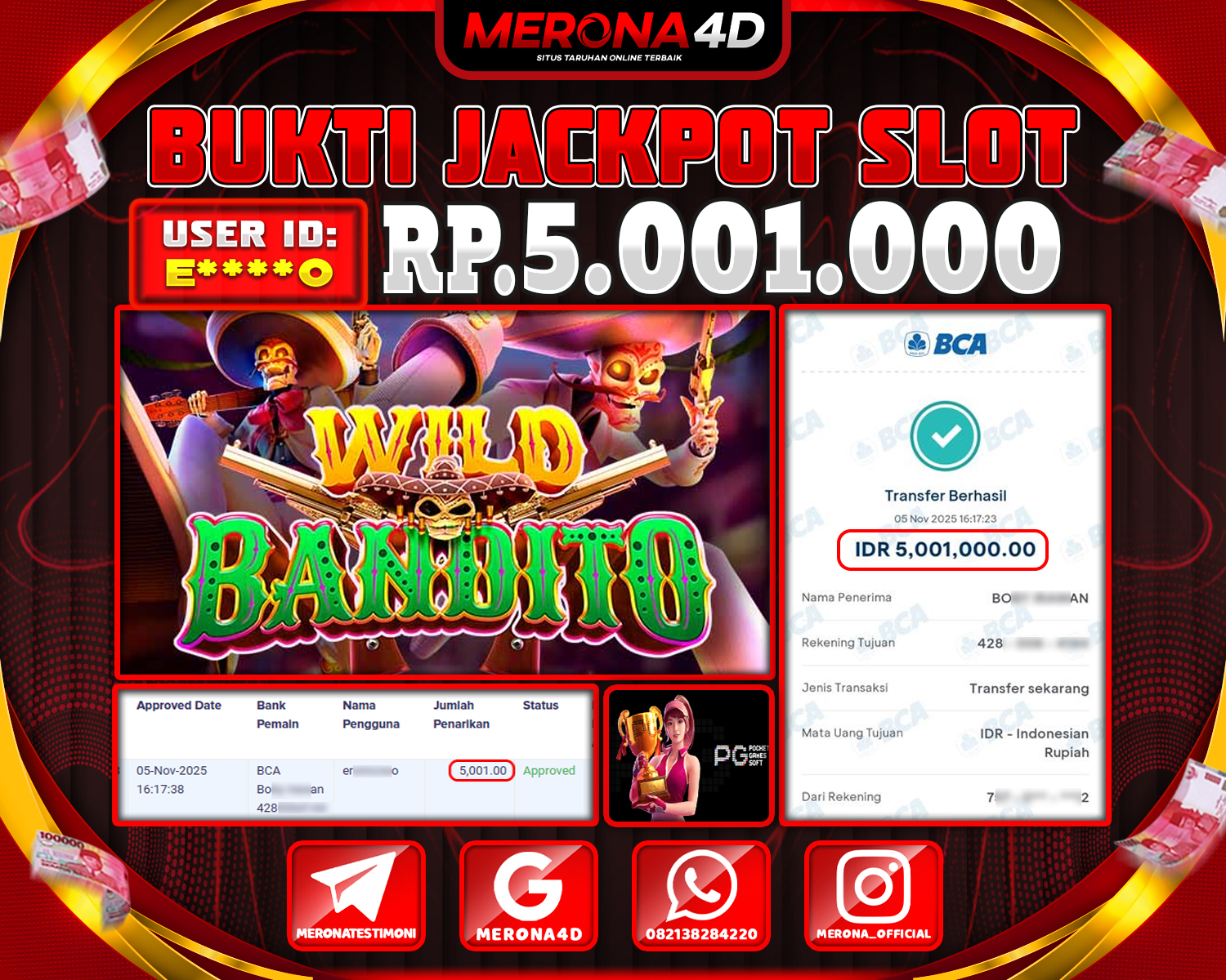 Selamat Kepada Member MERONA4D Eβ­‘οΏ½***οΏ½β­‘O Telah Jackpot Di WILD BANDITO