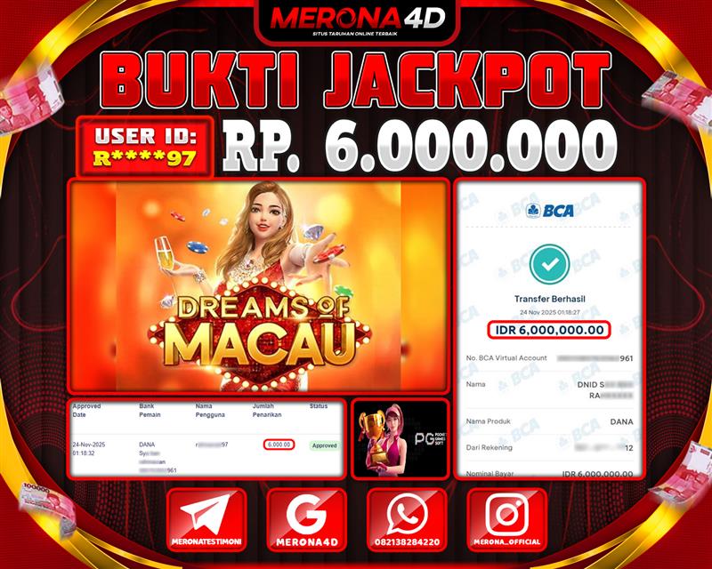Selamat Kepada Member MERONA4D R*****97 Telah Jackpot Di DREAMS OF MACAU