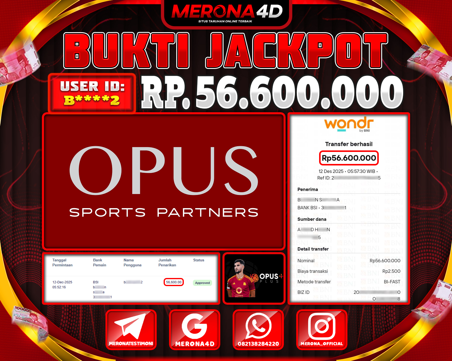 Selamat Kepada Member MERONA4D B****2 Telah Jackpot Di OPUS SPORTBOOK