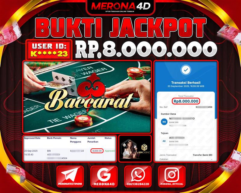 Selamat Kepada Member MERONA4D K*****3 Telah Jackpot Di BACCARAT