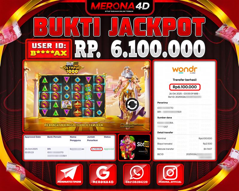Selamat Kepada Member MERONA4D B*****AX Telah Jackpot Di SLOT88 OLYMPUS