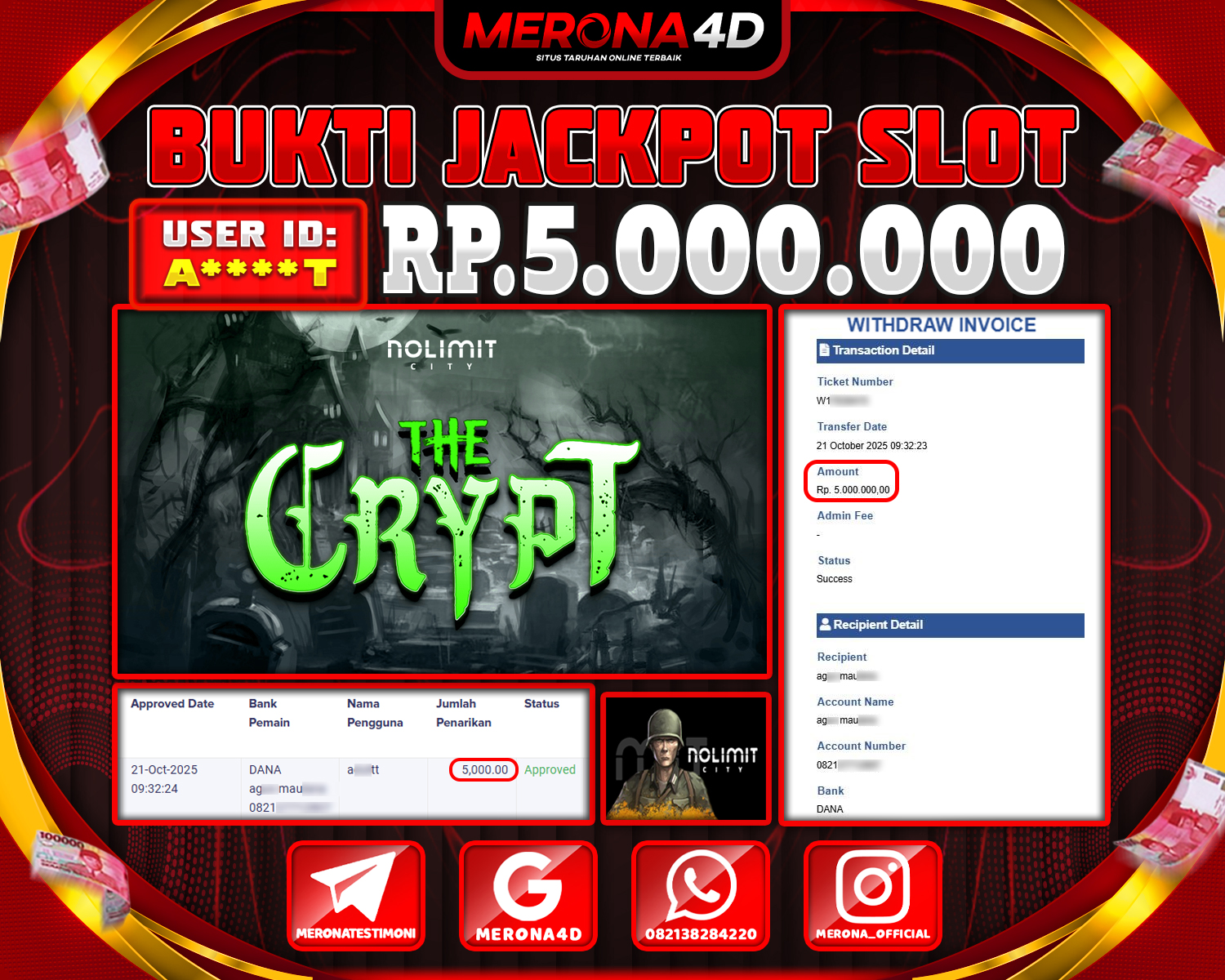 Selamat Kepada Member MERONA4D Aβ­‘οΏ½***οΏ½β­‘T Telah Jackpot Di THE CRYPT