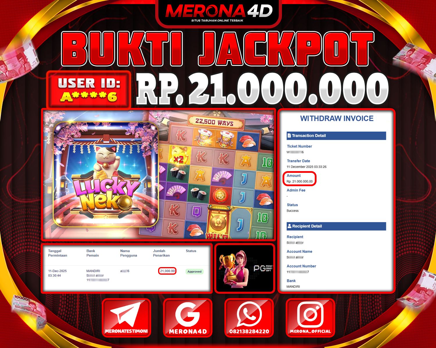 Selamat Kepada Member MERONA4D A****6 Telah Jackpot Di LUCKY NEKO