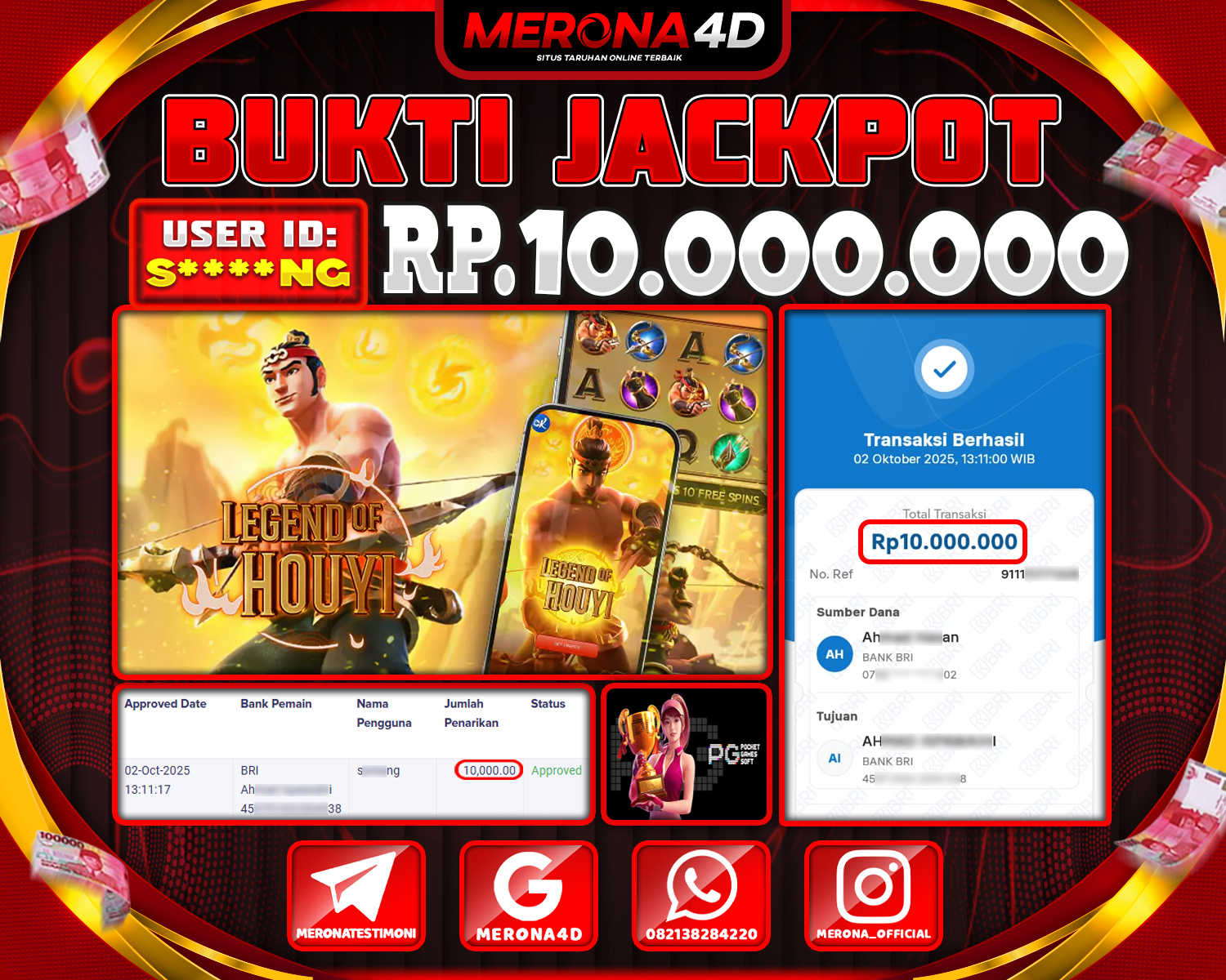 Selamat Kepada Member MERONA4D S*****G Telah Jackpot Di LEGEND OF HOU Y