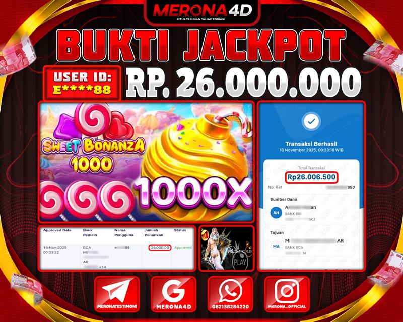 Selamat Kepada Member MERONA4D E*****88 Telah Jackpot Di SWEET BONANZA 1000
