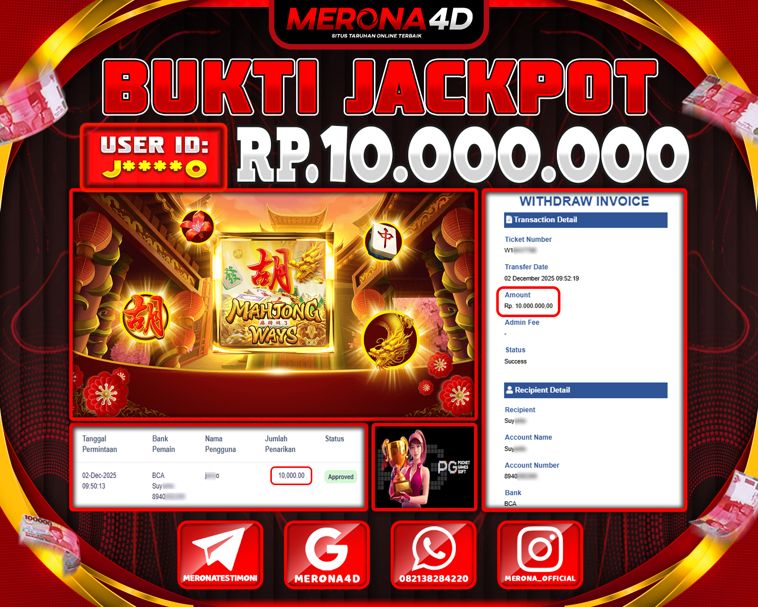 Selamat Kepada Member MERONA4D J****O Telah Jackpot Di MAHJONG WAYS