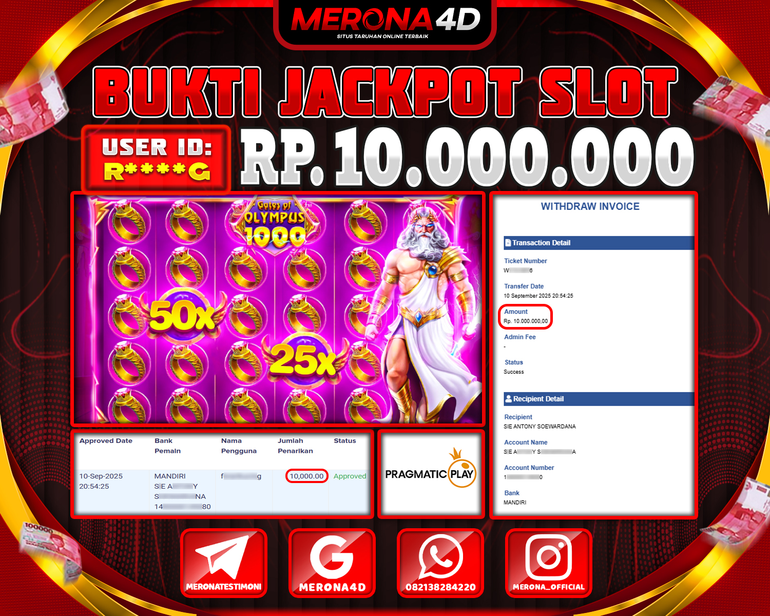 Selamat Kepada Member MERONA4D R****G Telah Jackpot Di GATES OF OLYMPUS 1000