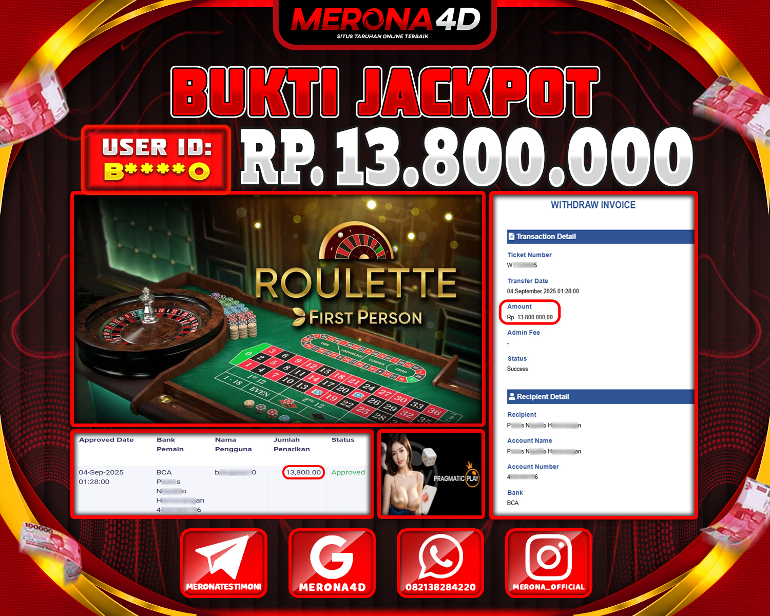 Selamat Kepada Member MERONA4D B****0 Telah Jackpot Di ROULLETE