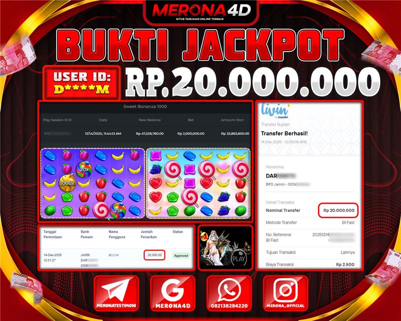 Selamat Kepada Member MERONA4D Aβ­‘οΏ½***οΏ½β­‘3 Telah Jackpot Di SWEET BONANZA 1000