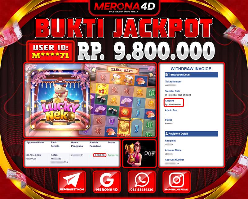 Selamat Kepada Member MERONA4D M*****71 Telah Jackpot Di LUCKY NEKO