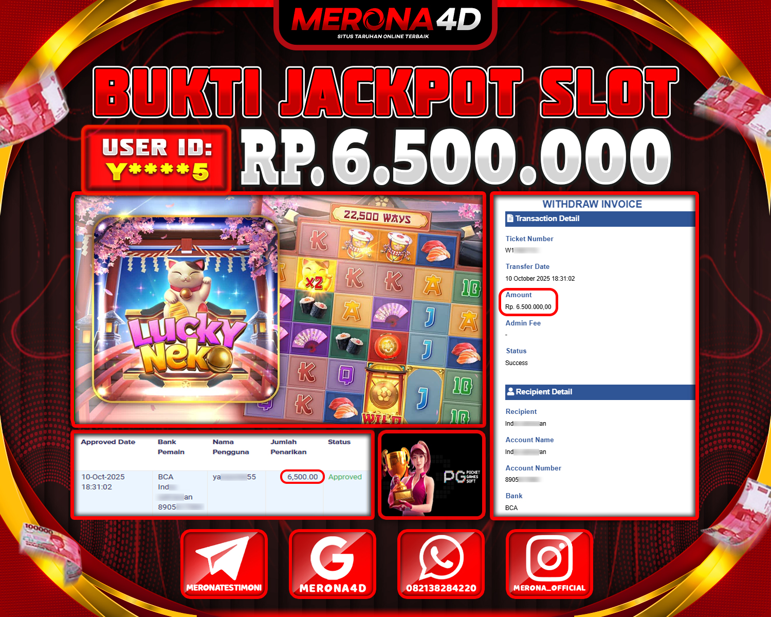 Selamat Kepada Member MERONA4D Yβ­‘οΏ½***οΏ½β­‘5 Telah Jackpot Di LUCKY NEKO