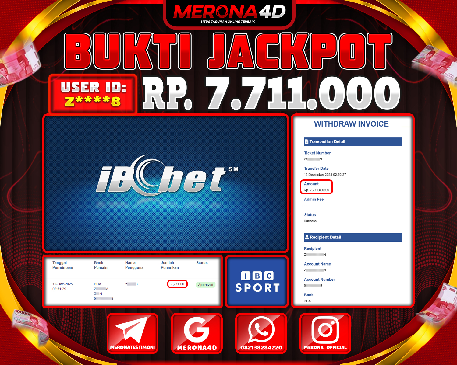 Selamat Kepada Member MERONA4D Z****8 Telah Jackpot Di IBC SPORTS