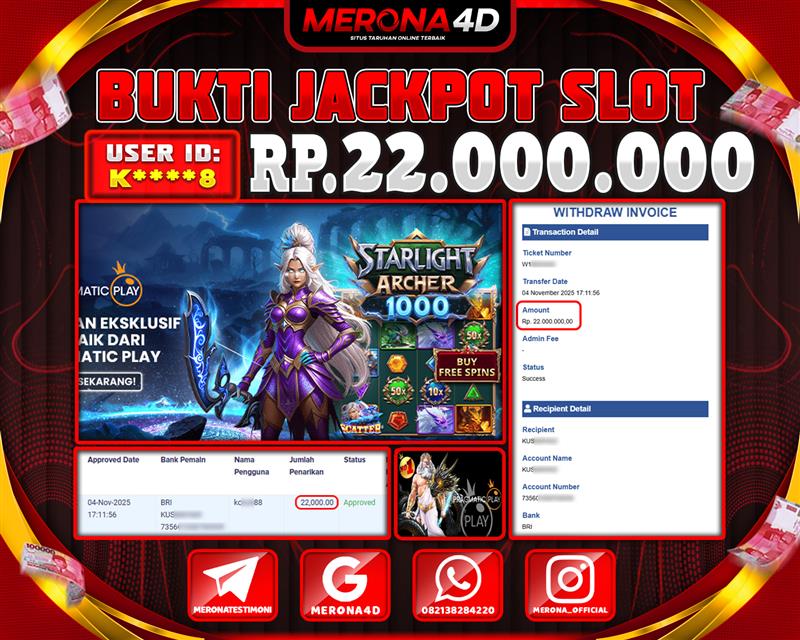Selamat Kepada Member MERONA4D K*****8 Telah Jackpot Di STARLIGHT ARCHER 1000
