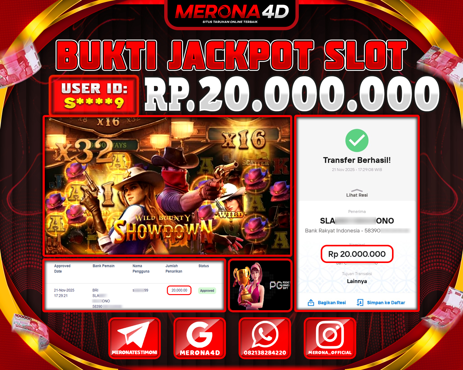 Selamat Kepada Member MERONA4D S****9 Telah Jackpot Di WILD BOUNTY SHOWDOWN