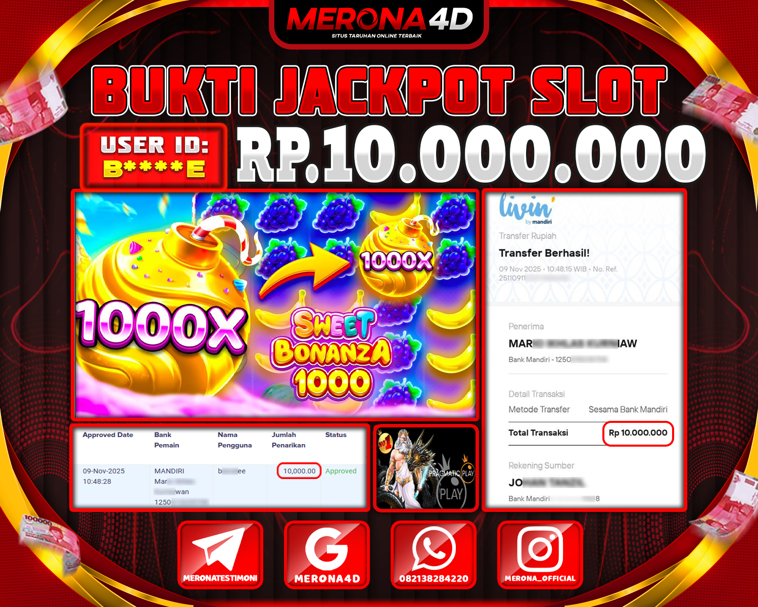 Selamat Kepada Member MERONA4D Bβ­‘οΏ½***οΏ½β­‘E Telah Jackpot Di SWEET BONANZA 1000