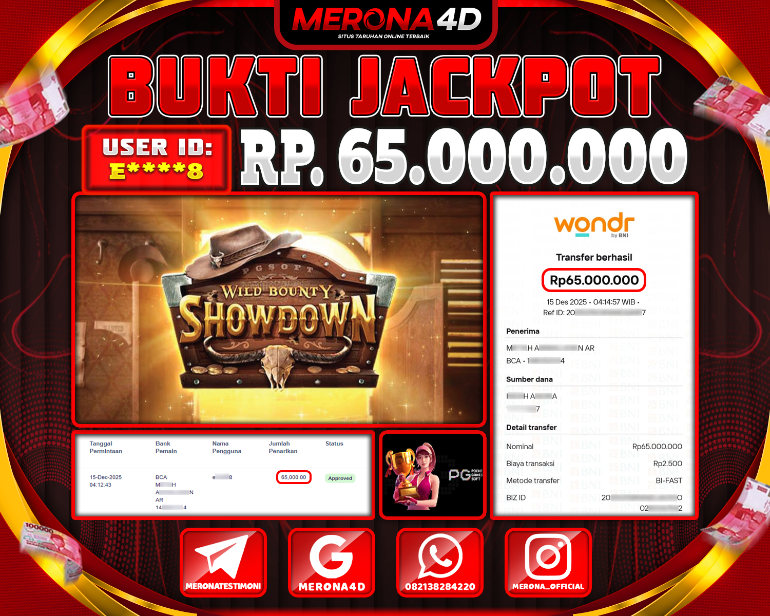 Selamat Kepada Member MERONA4D E****8 Telah Jackpot Di WILD BOUNTY SHOWDOWN