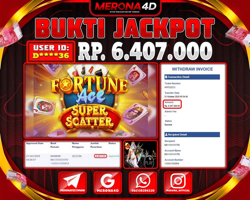 Selamat Kepada Member MERONA4D D*****36 Telah Jackpot Di FORTUNE ACE SUPER SCATTER