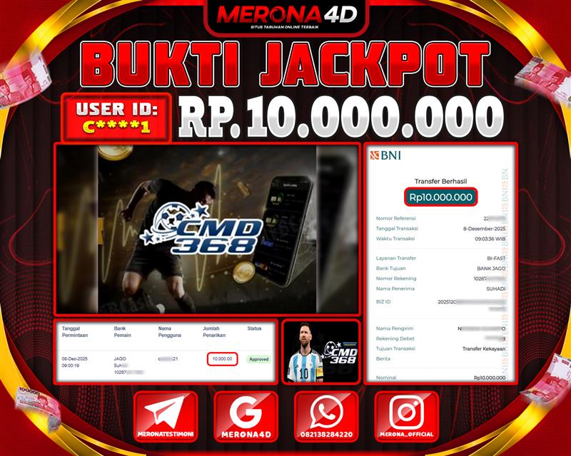 Selamat Kepada Member MERONA4D C*****1 Telah Jackpot Di CMD