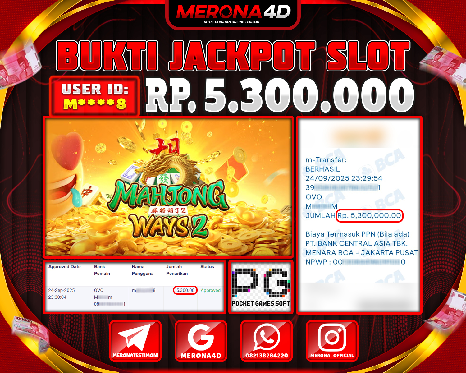Selamat Kepada Member MERONA4D M****1 Telah Jackpot Di MAHJONG WAYS 2