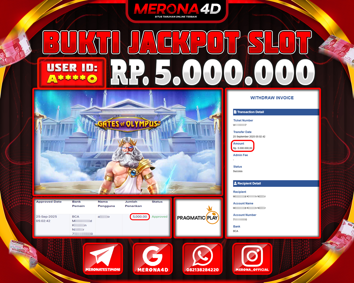 Selamat Kepada Member MERONA4D A****O Telah Jackpot Di GATES OF OLYMPUS