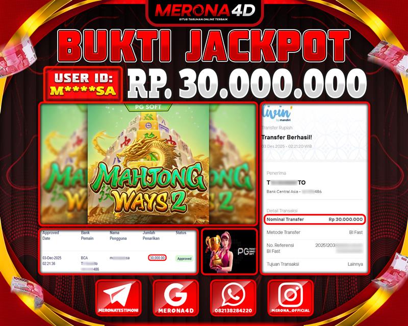 Selamat Kepada Member MERONA4D M*****SA Telah Jackpot Di MAHJONG WAYS 2