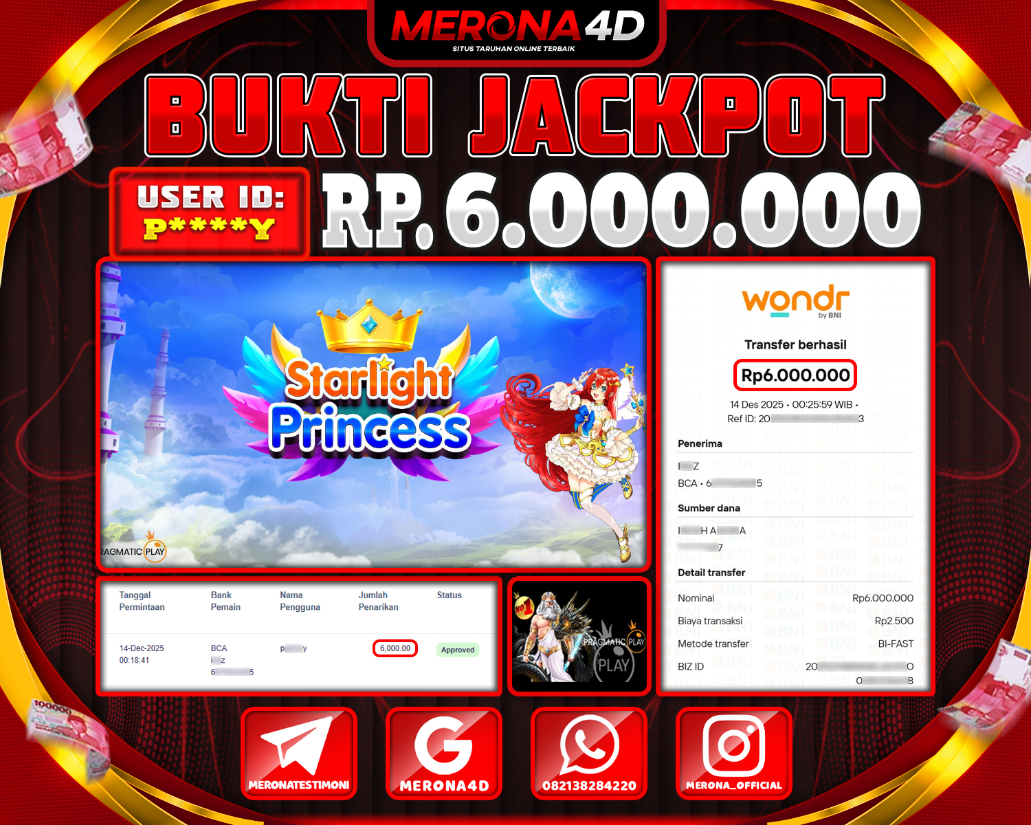 Selamat Kepada Member MERONA4D P****Y Telah Jackpot Di STARLIGHT PRINCESS