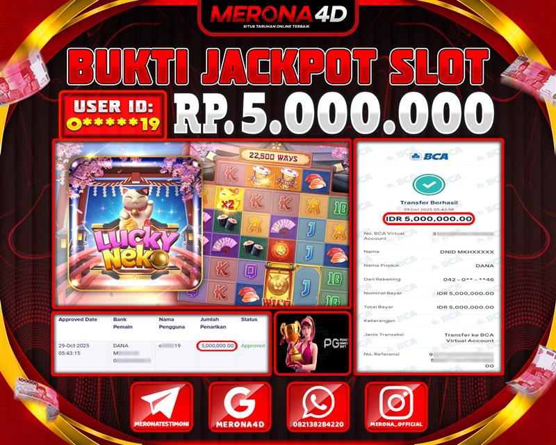 Selamat Kepada Member MERONA4D O*****19 Telah Jackpot Di LUCKY NEKO