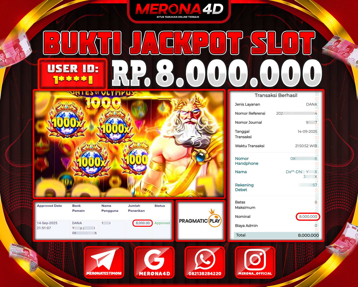 Selamat Kepada Member MERONA4D 1****I Telah Jackpot Di GATES OF OLYMPUS 1000