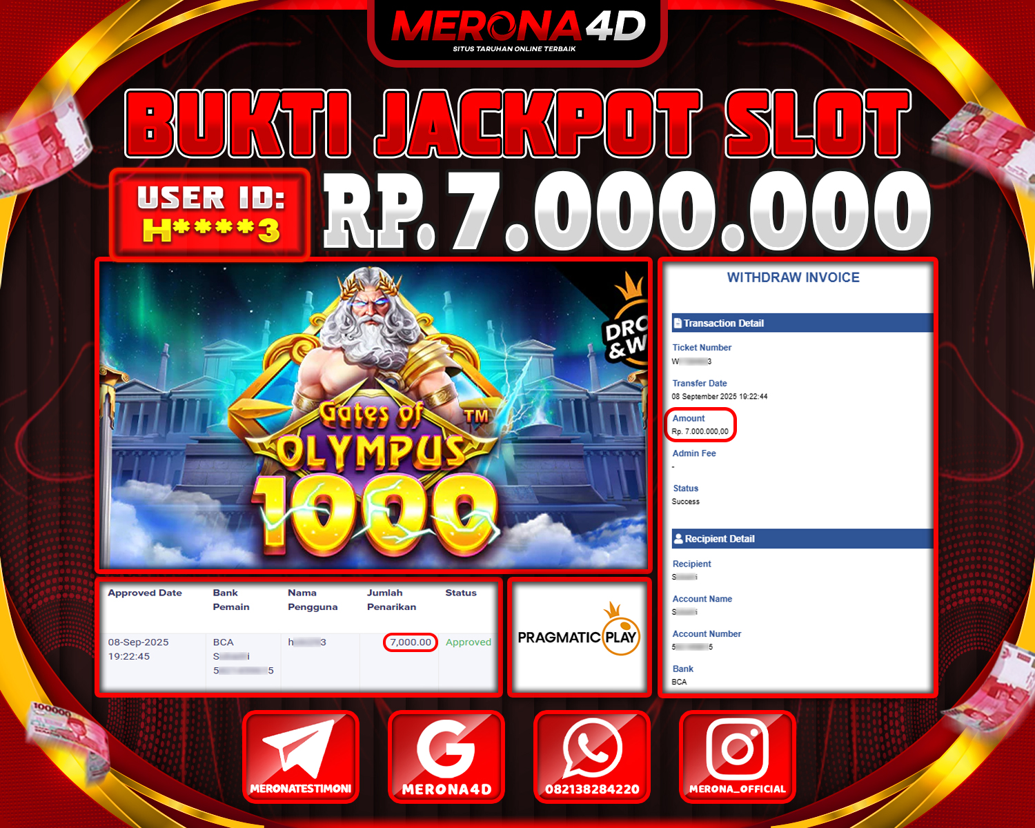 Selamat Kepada Member MERONA4D H****3 Telah Jackpot Di GATES OF OLYMPUS 1000