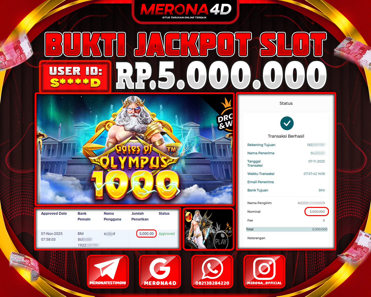 Selamat Kepada Member MERONA4D Sβ­‘οΏ½***οΏ½β­‘D Telah Jackpot Di GATES OF OLYMPUS 1000