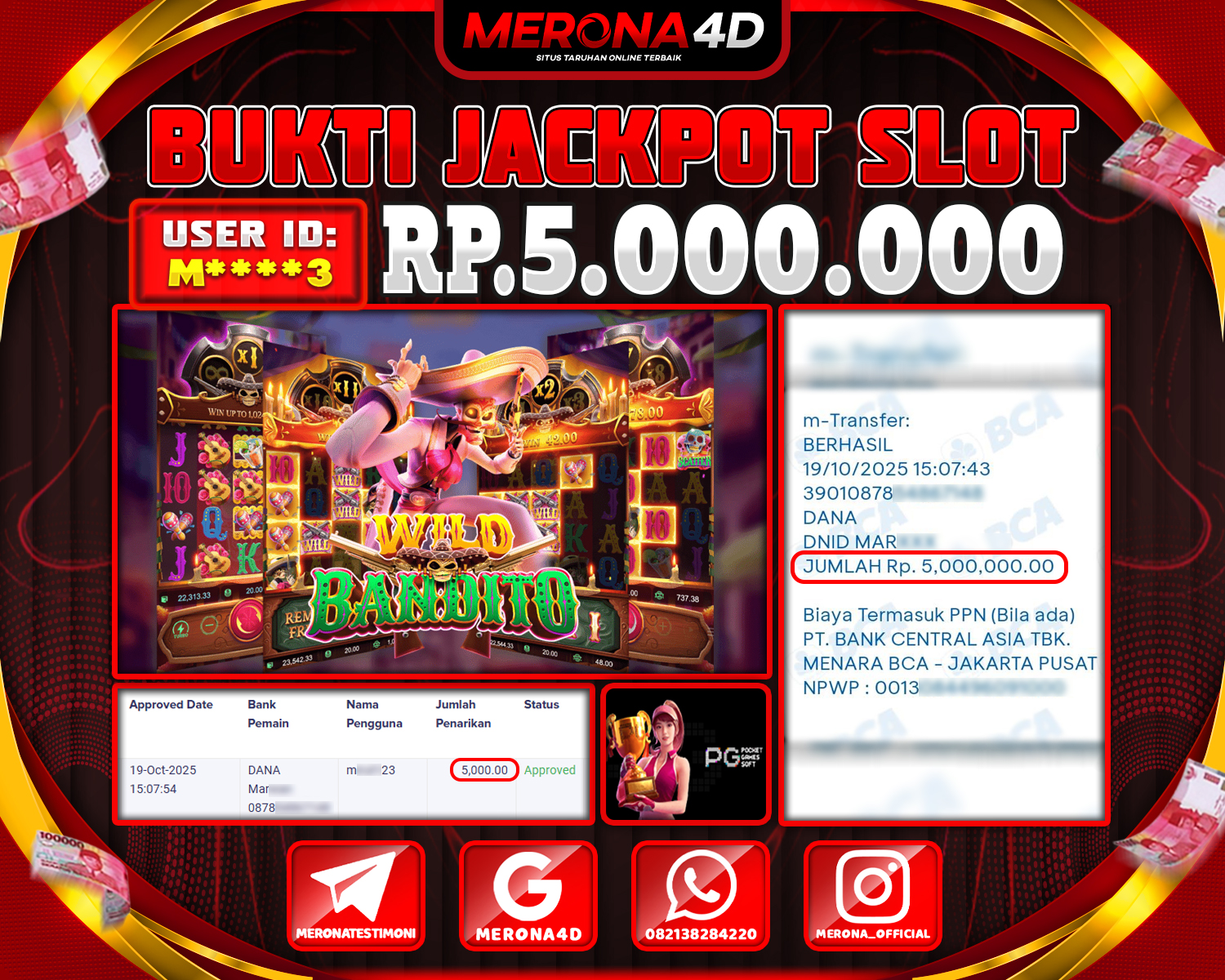 Selamat Kepada Member MERONA4D Mβ­‘οΏ½***οΏ½β­‘3 Telah Jackpot Di WILD BANDITO