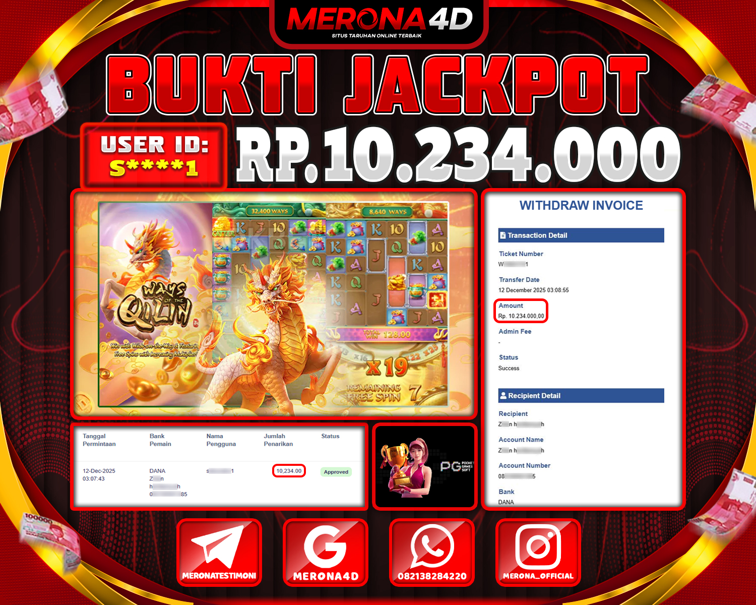 Selamat Kepada Member MERONA4D S****1 Telah Jackpot Di WAYS OF THE QILIN