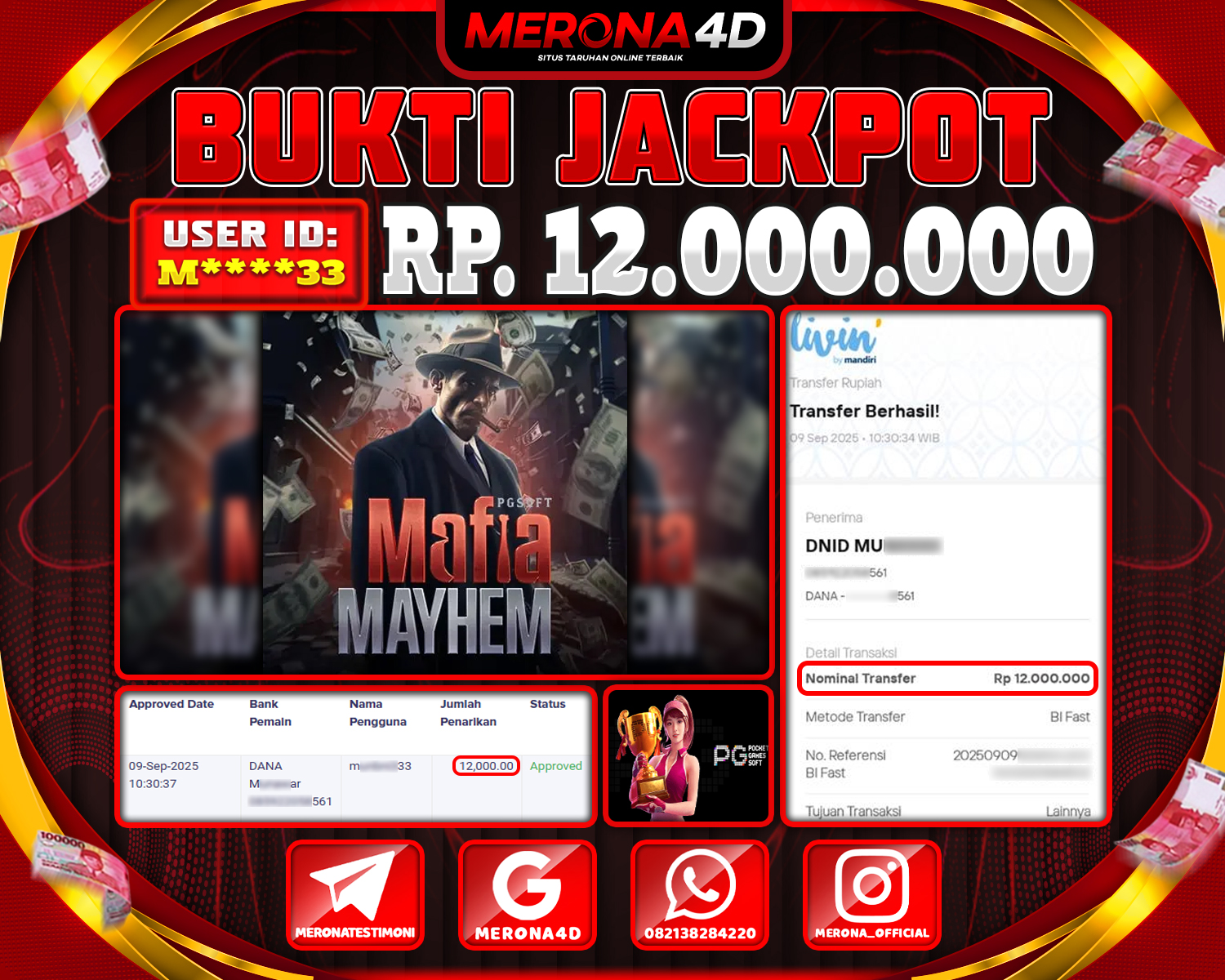 Selamat Kepada Member MERONA4D M*****3 Telah Jackpot Di MAFIA MAYHEM