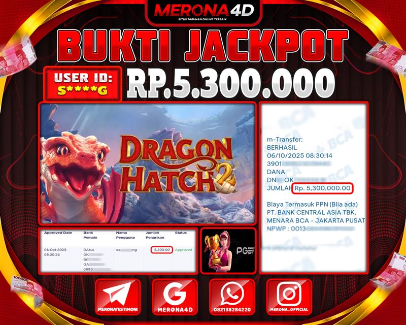 Selamat Kepada Member MERONA4D S****G Telah Jackpot Di DRAGON HATCH 2