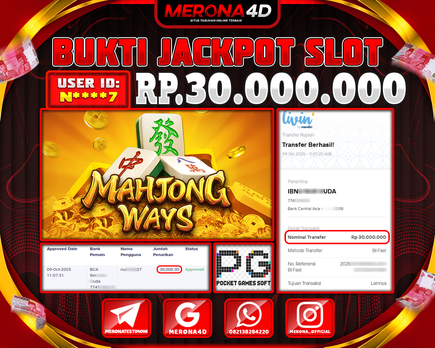 Selamat Kepada Member MERONA4D Nβ­‘οΏ½***οΏ½β­‘7 Telah Jackpot Di MAHJONG WAYS