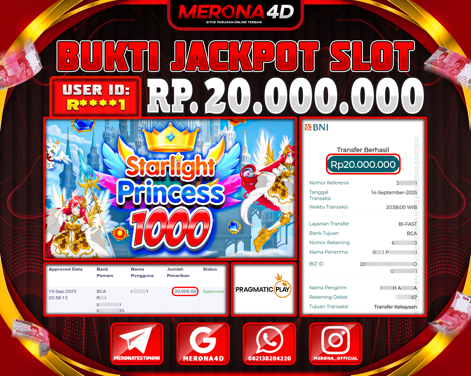 Selamat Kepada Member MERONA4D R****1 Telah Jackpot Di STARLIGHT PRINCESS 1000