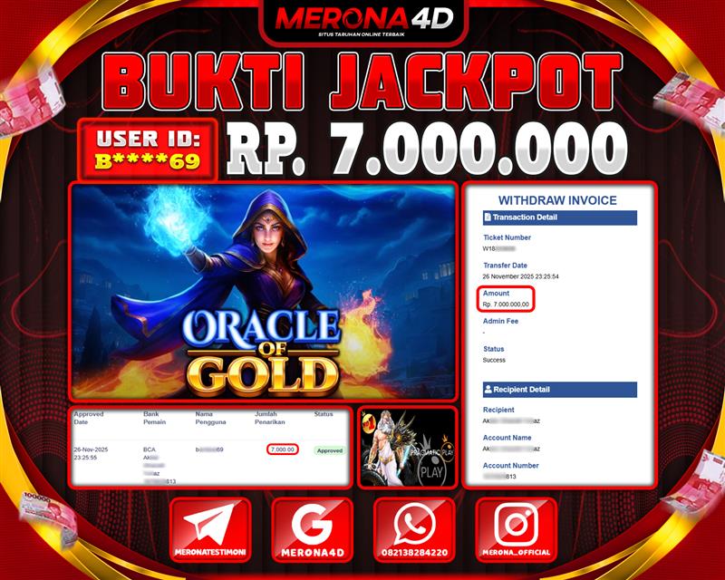 Selamat Kepada Member MERONA4D B*****69 Telah Jackpot Di ORACLE OF GOLD
