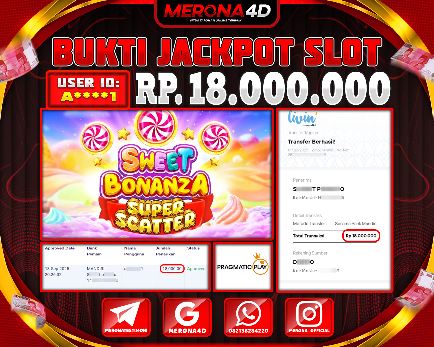 Selamat Kepada Member MERONA4D A****1 Telah Jackpot Di SWEET BONANZA SUPER SCATTER