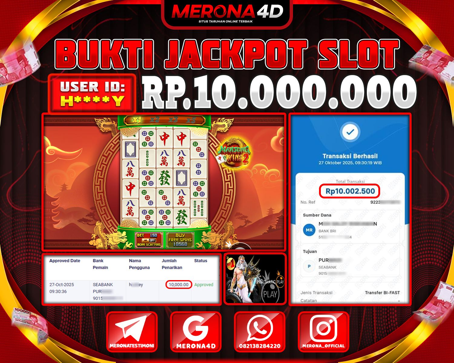 Selamat Kepada Member MERONA4D J*****5 Telah Jackpot Di MAHJONG WAYS 2