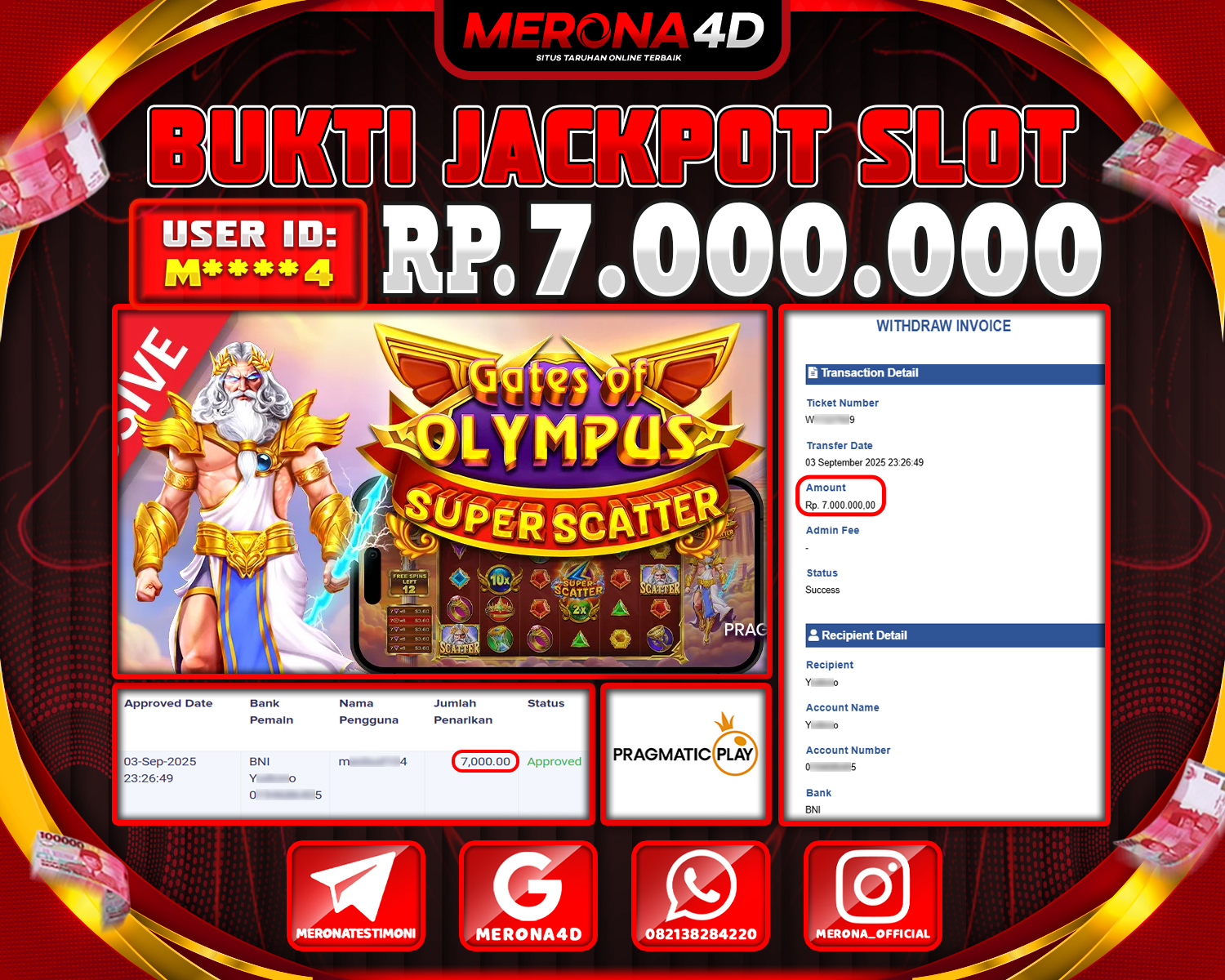 Selamat Kepada Member MERONA4D M****4 Telah Jackpot Di GATES OF OLYMPUS SUPER SCATTER