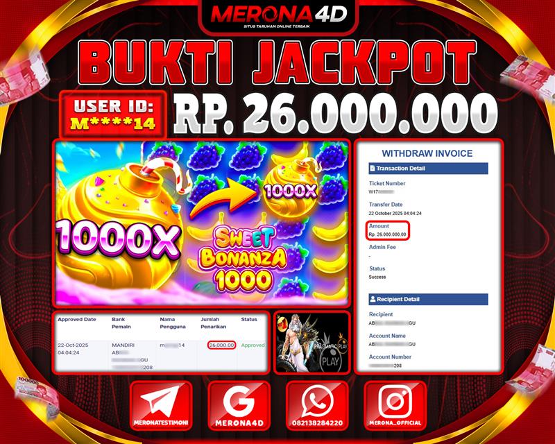 Selamat Kepada Member MERONA4D M*****14 Telah Jackpot Di SWEET BONANZA 1000