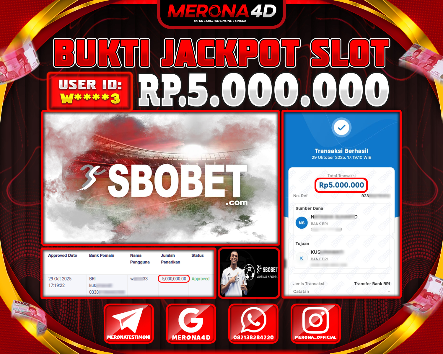 Selamat Kepada Member MERONA4D Wβ­‘οΏ½***οΏ½β­‘3 Telah Jackpot Di SBO SPORTS BOOK
