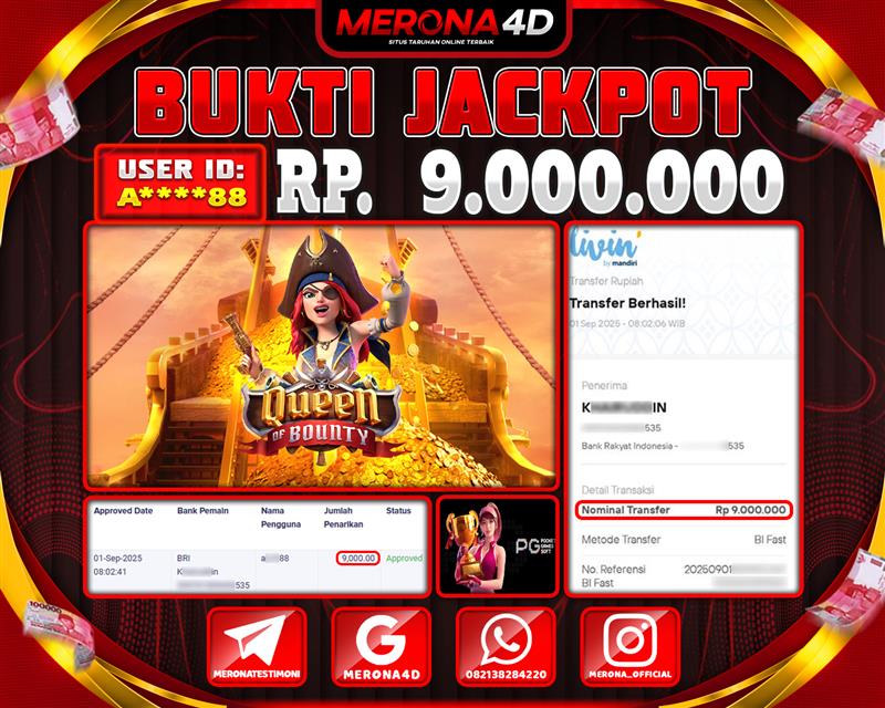 Selamat Kepada Member MERONA4D A*****88 Telah Jackpot Di QUEEN OF BOUNTY